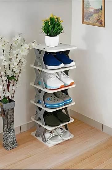 High Quality Stackable Shoe Rack Organizer 5 layer. Material: Made from durable plastic, which is lightweight yet sturdy enough to hold multiple pairs of shoes. Plastic construction also makes it easy to clean and maintain. Tool-Free: Usually requires no tools for assembly, with parts that snap or slide together for quick setup Multiple Tiers Open Beautiful Design Stackable